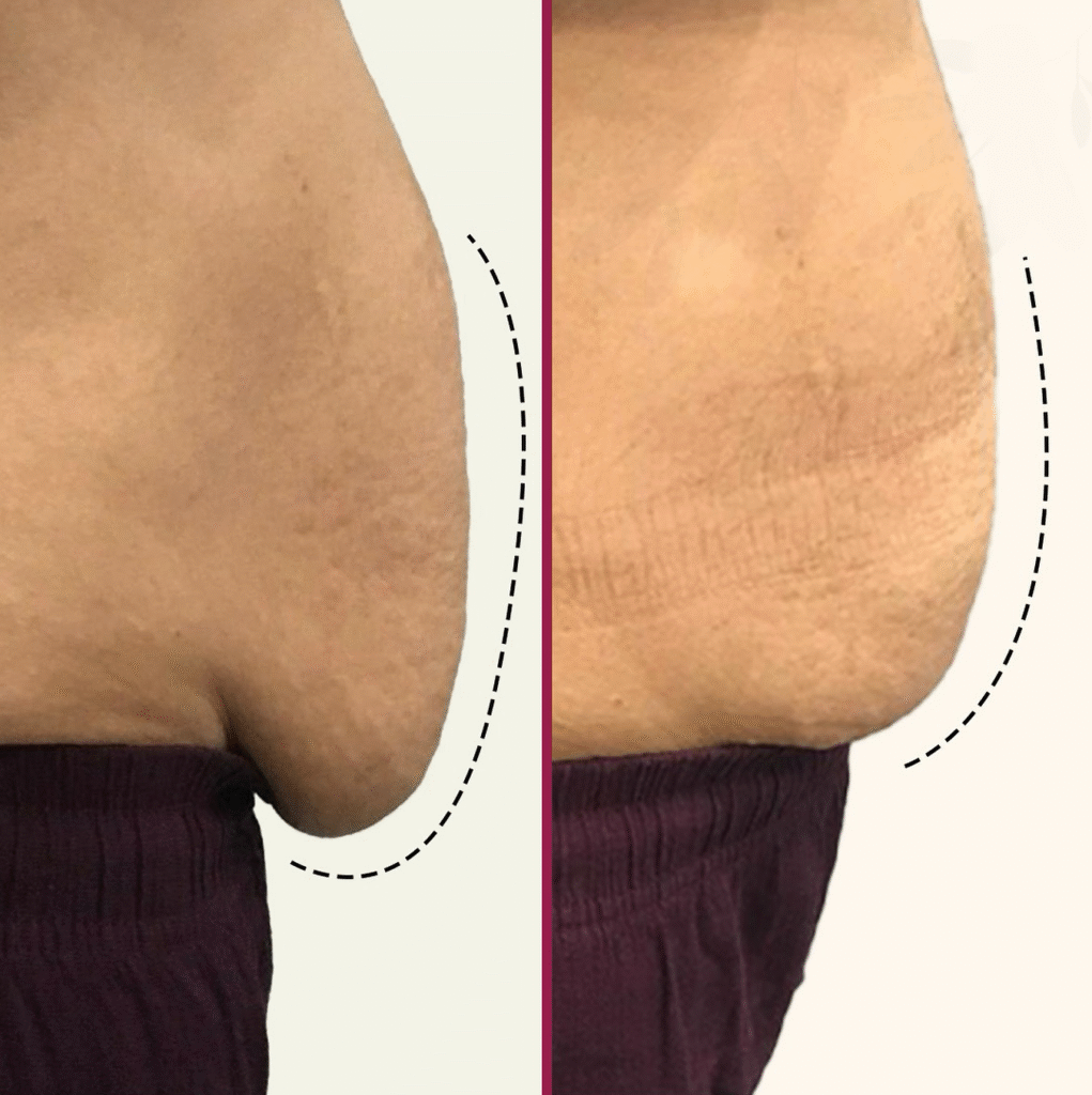 🔹 Precyzyjne działanie na tkankę tłuszczową – technologia skoncentrowanej energii działa bezpośrednio na komórki tłuszczowe w okolicy brzucha, prowadząc do ich trwałego usunięcia.